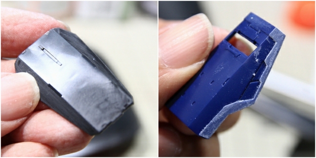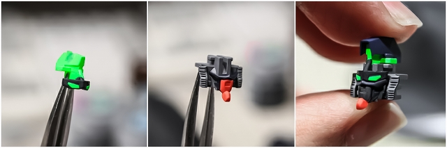 赤もグレーもそれぞれ一長一短。単体で見ると良い感じなのに、頭部に装着するとバランス崩れたり。またその逆もあったり。ここは取説に準拠してグレーを選択しました。