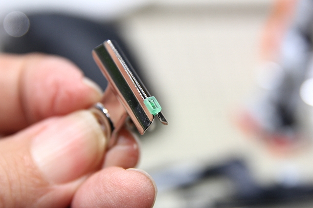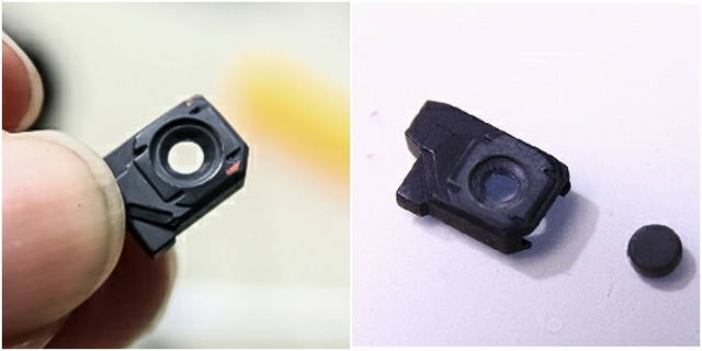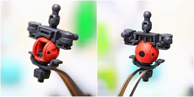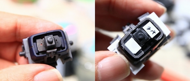 胸のセンサーは透明パーツです。これは発光もできるし塗り分けもできるし、そのままでもOK。いいパーツですね。