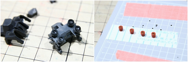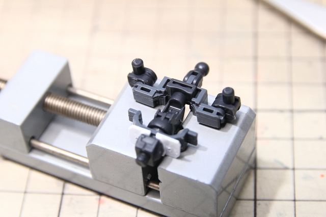 バルカンポッドは4パーツ構成で、それぞれ一発抜き。金型もディテールも良く抜けてます。頭部への装着アタッチメントを調整。