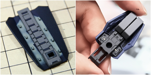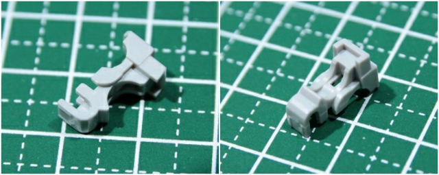 じつは首や腰やヒザなど含めた全関節の中でいちばん難しい部分かもしれない。設定画でもココのデザインがあやふやだったり、キットではバッサリ省略されてたり。