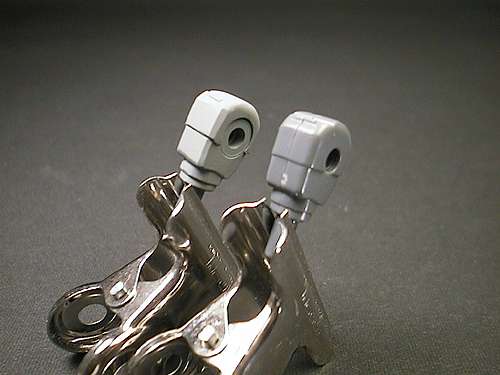 ヒジ間接改修。 右がノーマル。モールドが甘いというか、面構成がよく判りません。 左が改修後。パテ盛り&削りだしで面をしっかり出しました。