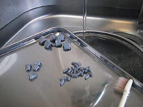 ゲート処理、バリ取りなどの 大まかな ヤスリがけが終わり、 クレンザーで削りカスと離型剤を 落とします。