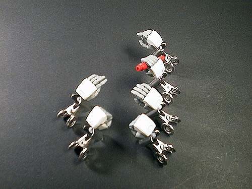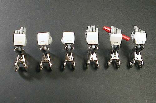 基本色を塗装。 左が「握り」と「平手」。 右が「握り」「平手」「サーベル握り」「ライフル握り」。