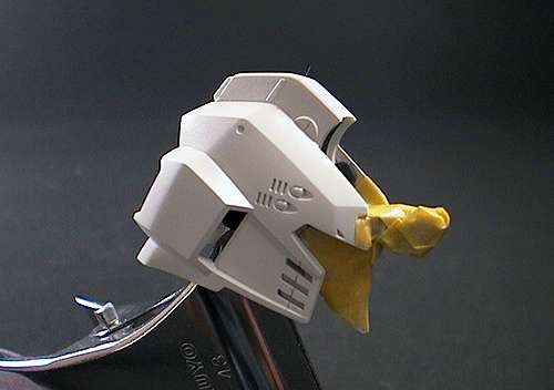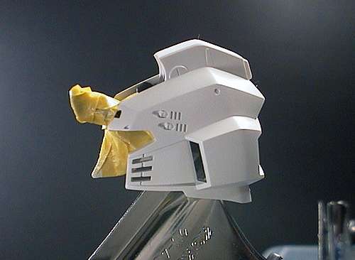 接着乾燥時間が必要なパーツから 先に組み上げていきます。これは フェイス塗装→すみ入れ→ヘルメット塗装→接着→ 乾燥→合わせ目消し→マスキング、の状態です。