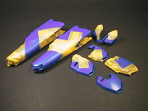 ベースの、わずかに紫がかった青を塗った後、 これからスプリッターの薄めの青を吹きます。 写真技術がないので、ブルーが綺麗に撮れてませんね(^_^;)