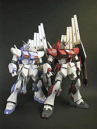 ●ここから下、製作途中の写真です● ●●●ここから下、おまけの写真です●●● 左の紫色のニューガンは、まだ製作途中。 ペイントがほぼ終わったところです。 ニューガンが2体揃うのはナカナカないので、 記念に撮影しました。