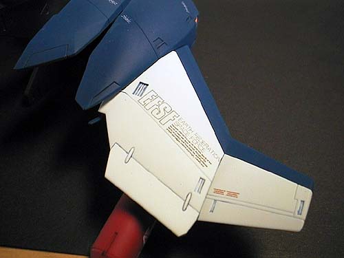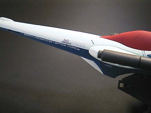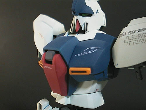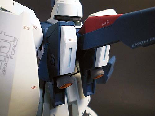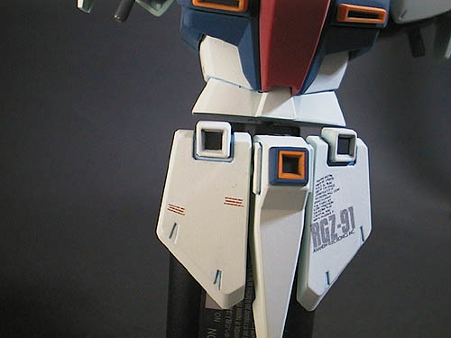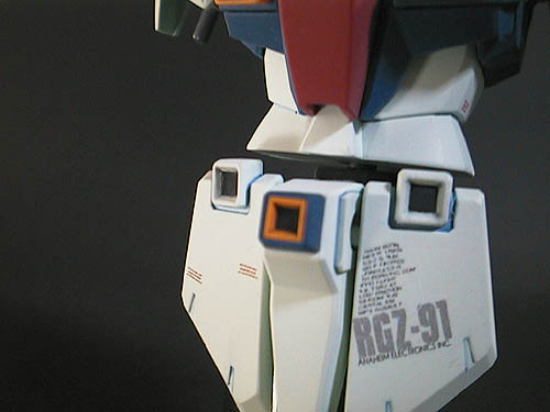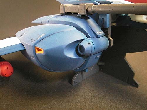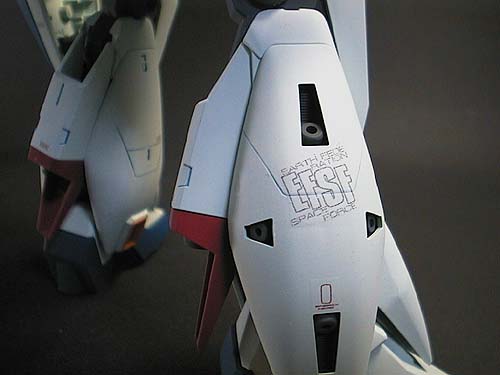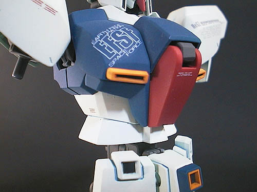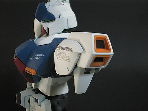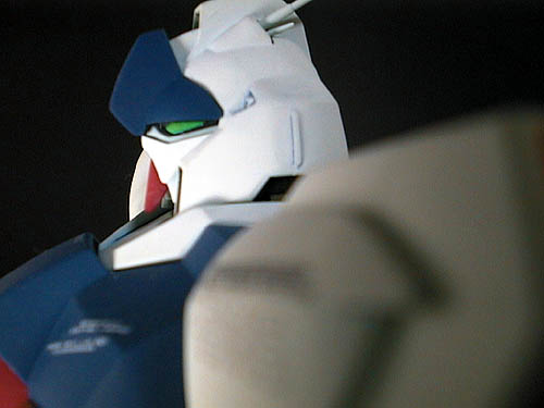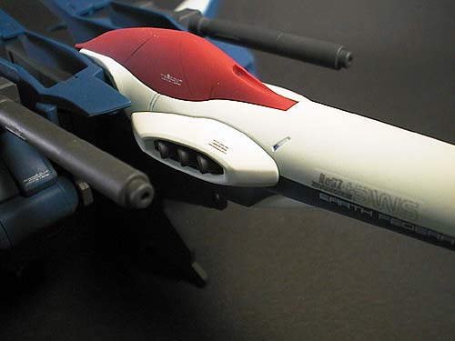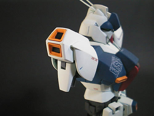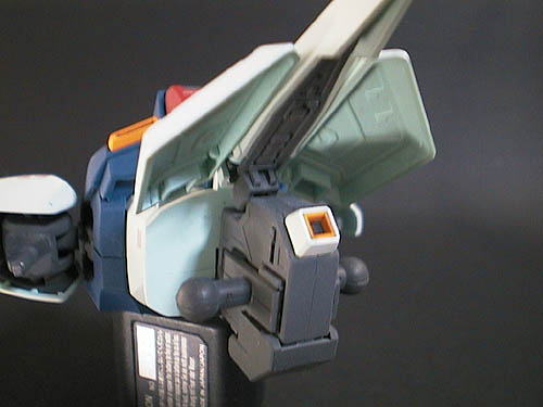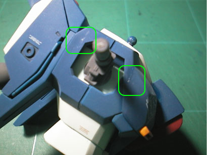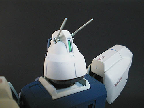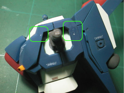 ●以降、追加工作です● アンテナを接着固定。 頭頂部カメラをグリーンに。 アイカメラをグリーンに。 後頭部カメラをグリーンに。 襟足につくグレーのパイプの部品も接着。 黄色いダクト内をブラックに。 塗り分けラインの甘い部分は、スジ彫りしています。 ここも、ですね。