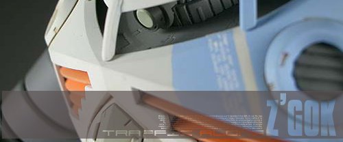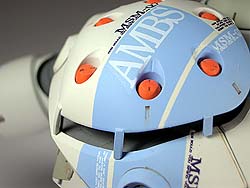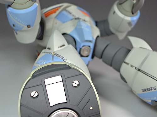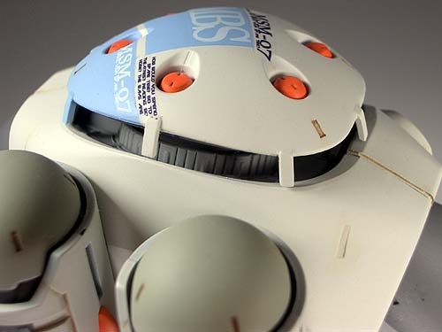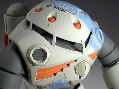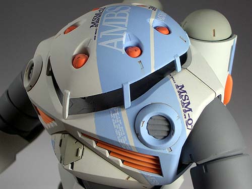 塗装はみての通り、重厚イメージの強いズゴックを あえてポップな感じにしました。オレンジを派手に 目立たせたかったので、ゆるくグラデーションに してあります。蛍光色は使っていませんがそれに 近い発色になったと想います。