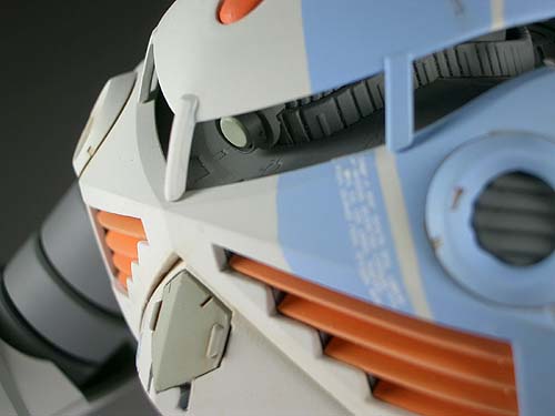 基本的にストレートに組んでます。 以下の点を改修しました。 ・モノアイを市販パーツで作り直し。 ・肩の合わせ目を、段差モールドに。 ・蛇腹関節の可動強度を調整(経験則により)