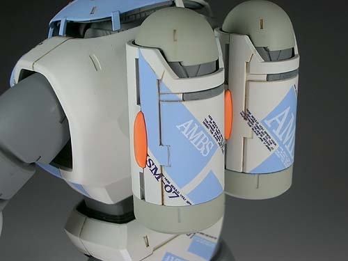 パステルぽさを失わないように、スミ入れは控えめに 行いました。 デカールはこのズゴック専用に 新規にデザインした自作デカールです。 ランダムな配置にバランス良く貼るのは結構 難しいです(^_^;)。