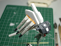 リアアーマー。 ガンコレやMFSは、買ったりはするのですが、きちんとしたリペイントや改造はやったことがありませんでした。製作記事を載せてから「完成を期待している」というメールなどを頂くようになり、想った以上に食玩ファンの方の多さを知ることができました。実際、いじってみて楽しいですね! |