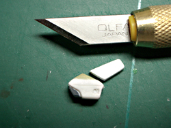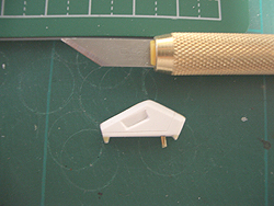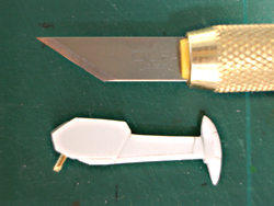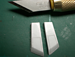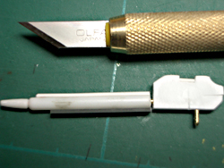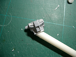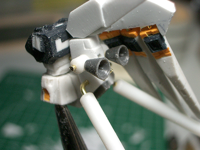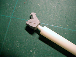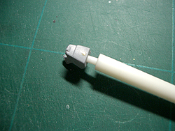 長さを調整しながら瞬着で固定。ここにパテを充填します。ここで気付きましたが、プラ板で新造した方が早そうです。 |