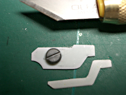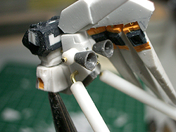 ビームライフルのディテールです。これはゲージで、これを元にプラ板から切り出してます。 |