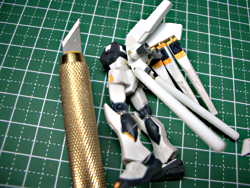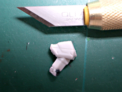 作業中は集中してるし、手も汚れてるしで、撮影は難しいですね。 これはバックパックのセンターユニットです。一部スジ彫り済。 |