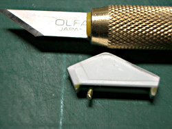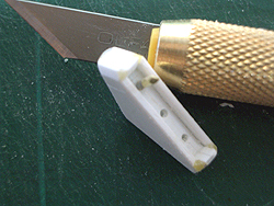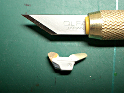 肩パーツ。加工には専用持ち手を作って固定。 |