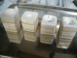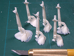 フィンファンネル×6枚はレジンで抜きます。マスターから形の良い物を選んで整形後、シリコンで両面型取り。上手く抜けるかどうか、また次回に・・・・ |