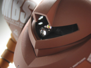 ところが、おなじMG 1/100サイズなのにそれぞれモノアイのサイズが大きく違います。それぞれの大きさのレンズを使っても良かったのですが、4機の共通性をもたせたかったので根本的に作り直すことにしました。