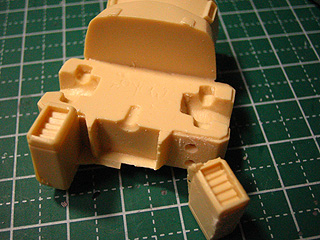 ダクト状のブロックが胸部と一体成形になってます。これは迷わずのこぎりで切り離しました。