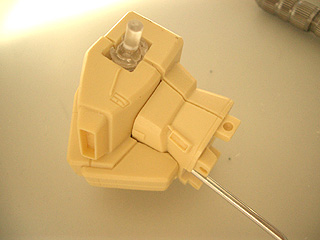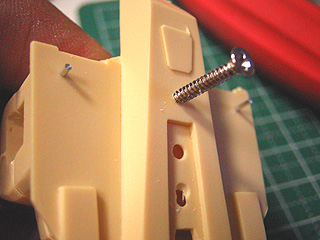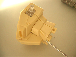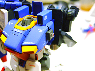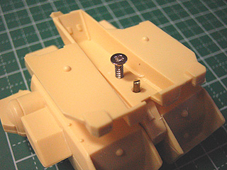バックパックが非常に重いので、しっかりネジ止めします。Plamo-Plusのネジを使ってます。ガレキには便利ですよ〜