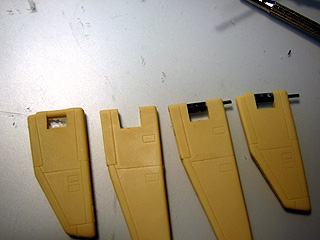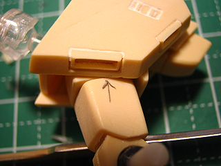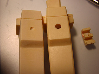 シンプルな上腕から始めます。まずは整面。そして穿孔です。キットの穴がかなりゆがんでいたので、修正に苦労しました^^;