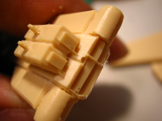 小さい気泡が面倒な位置にあったので、大きく削り落としてプラ板で修正しました。