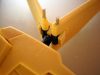 ウイング基部は、ポリ棒と真鍮線に置き換え。