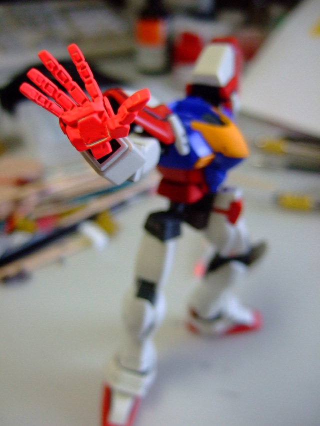 ノーマルのGガンのキットを加工中。ノコギリで切り刻んで各面を整えたり、ラインを変えたり・・・