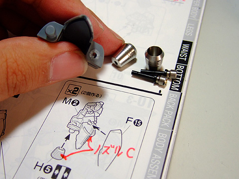 腰のサイドアーマーです。シンプルにノズルCがピッタリ。ノズルFでも決まると想います。