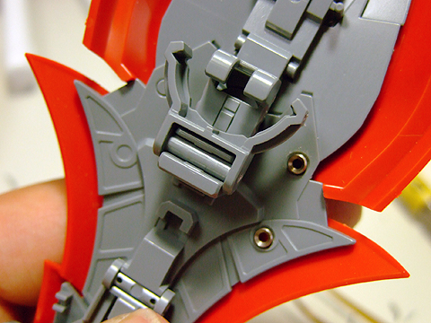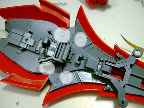 肩のプロテクターの内側。PPノズルBを使いました。ノズルCをつかえばもっと迫力が増します。
