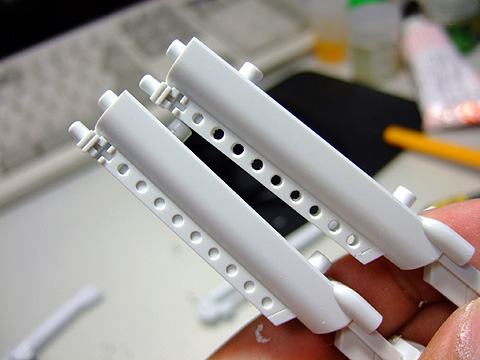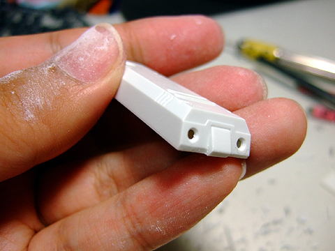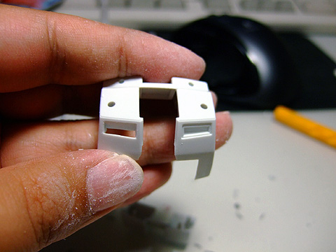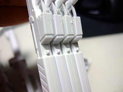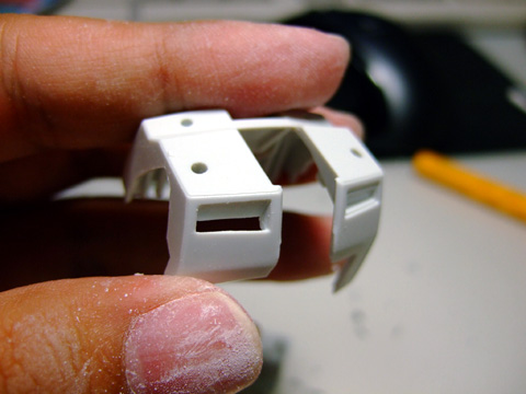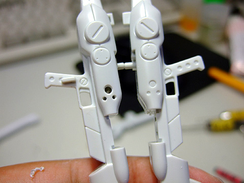 ヒザのパーツ。あまり目立ちませんが、モールドは彫り直しておきました。