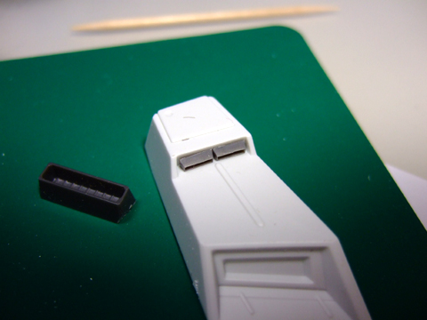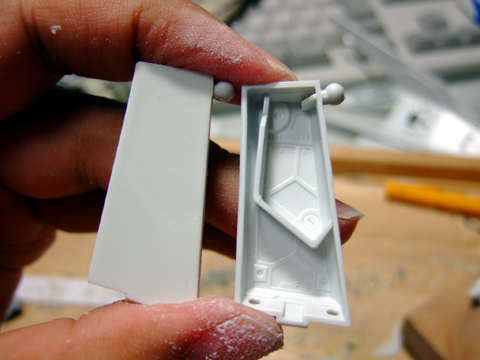 フロントアーマー裏側。プラ板でフタをしました。このあとモールドを追加します。