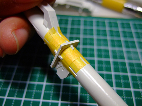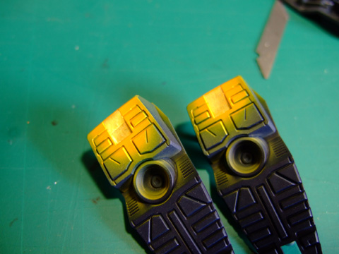 これで青と黄色が別パーツになったのでそれぞれ塗装して接着。