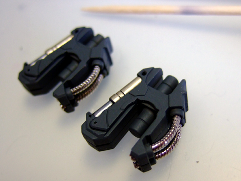 砲尾のラッパ状の部分も、メタルパーツに変更しました。