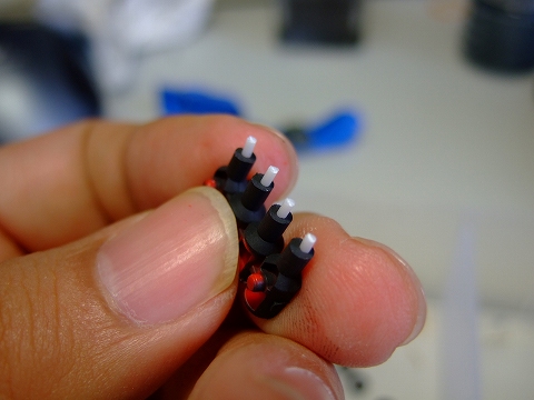 長めの1mmのプラ棒を差し込んで、あとからカットして長さを整えます。2mmくらい出てるとちょうど良い。