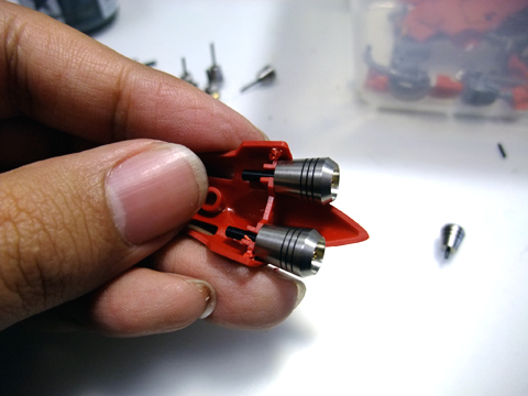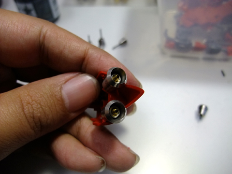 基部に穴をあけ、アポジを挿入。