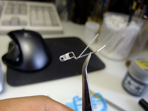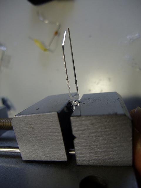 導電材を曲げ加工して電極をつくりました。