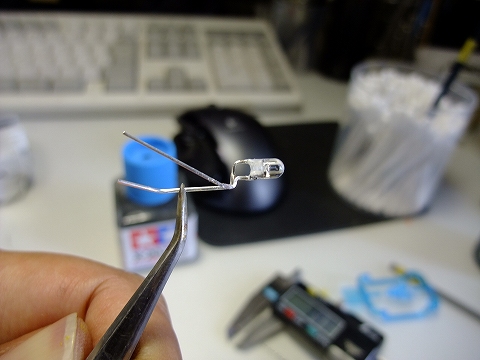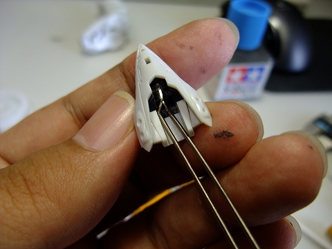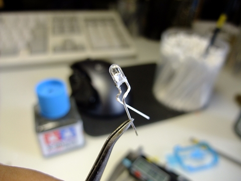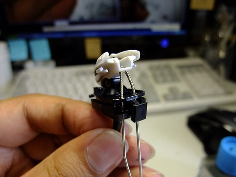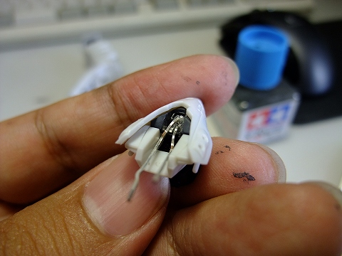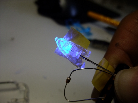 小さめのLEDを、さらに削り込んで頭部に収まるように形を変えています。