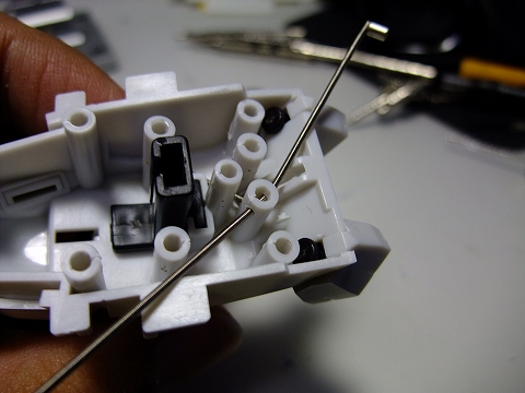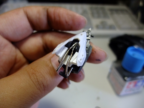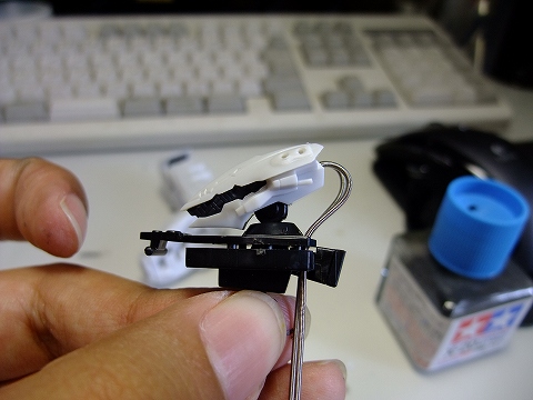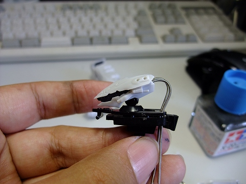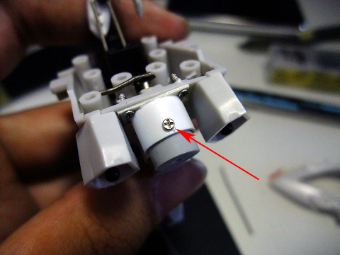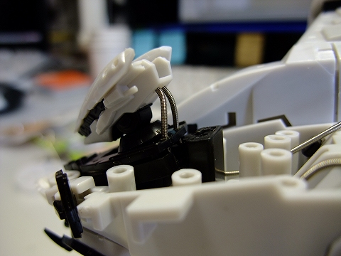 胴体の右ワキ、写真では手前の場所にスイッチを固定しました。