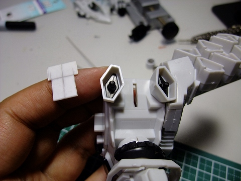 これは首のパーツです。LEDのために接合部を少し削っています。
