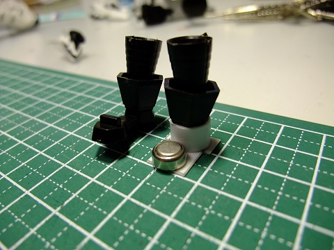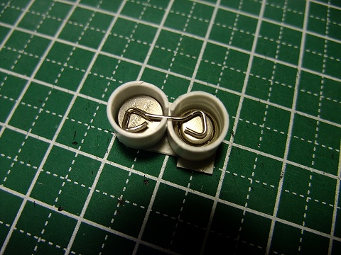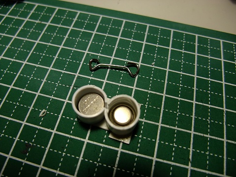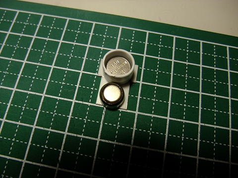 ボタン電池を収めるための電池ボックスをプラ板を丸めたモノで