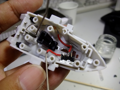 スイッチ取り付けは、もとは基盤に装着するように出来ていますが