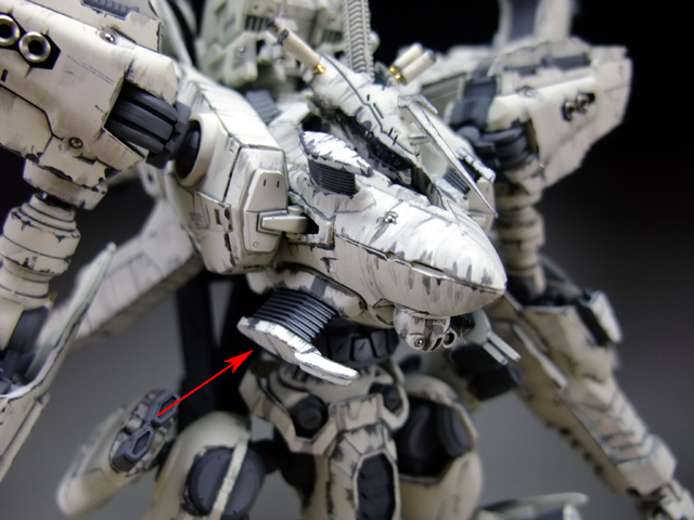 ホワイトグリントは変形機構があるので、首の可動が複雑になっています。