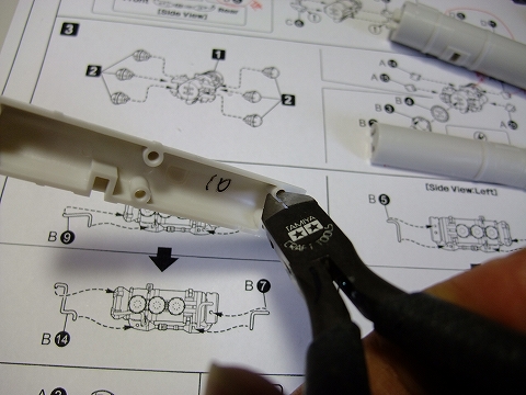 スナップフィットも固く、分解が難しいのでMKカットを施します。