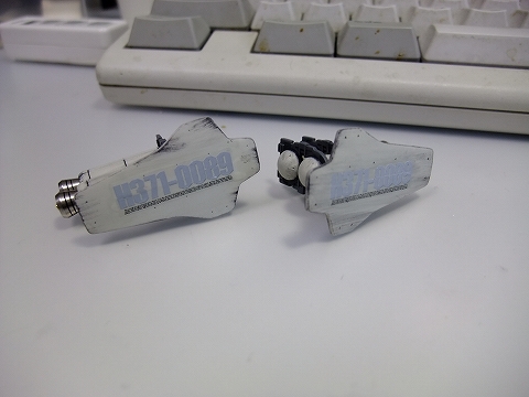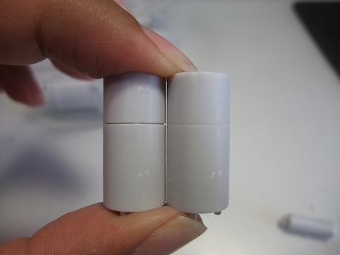 左上のノーマルパーツ、右下はディテールを彫り治したパーツ。