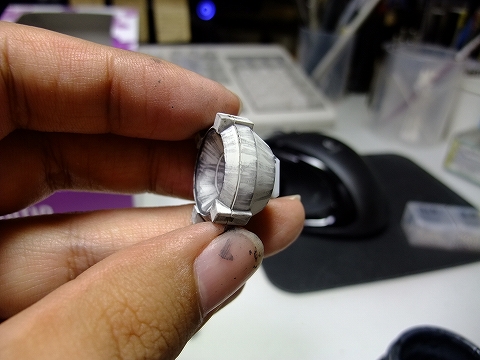 塗り分けを行いました。塗り分けラインを旋盤で彫り治したので