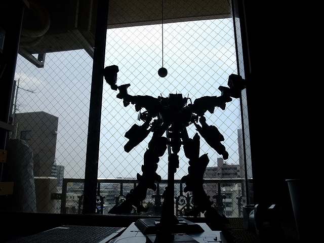 仮組中、いろんな場所に置いて、いろんな角度からシルエットを確認します。