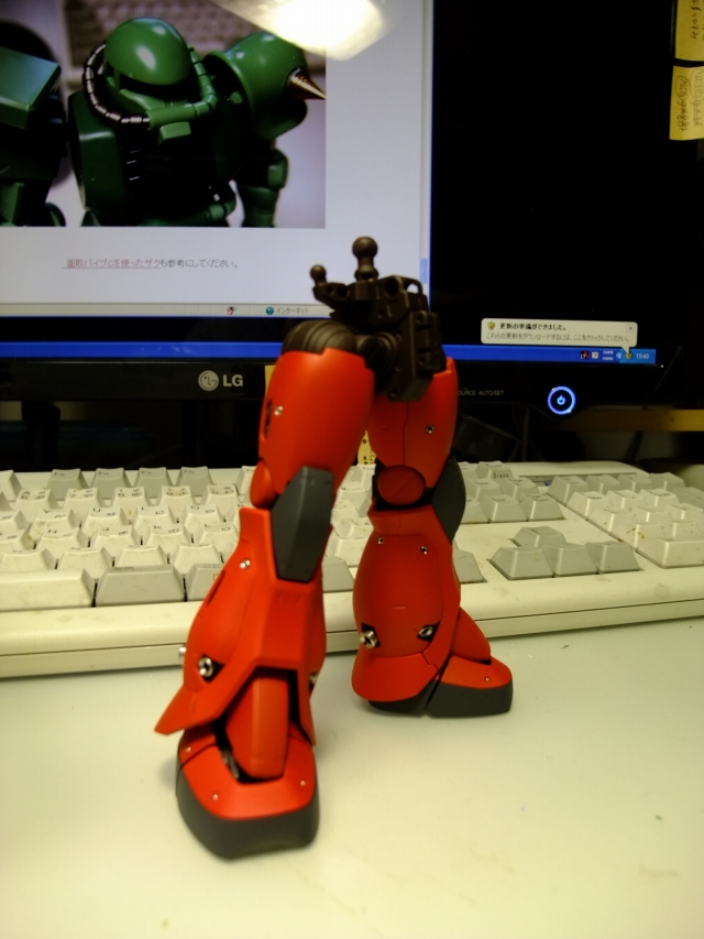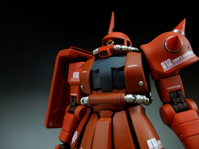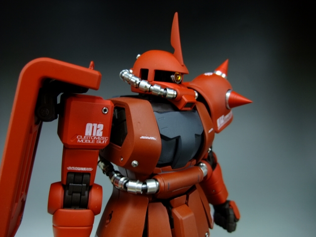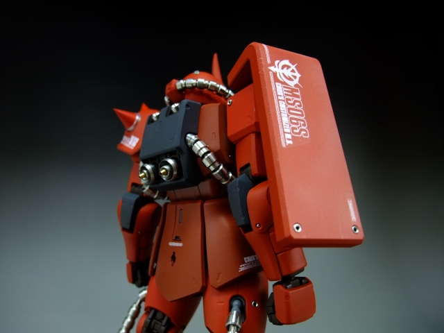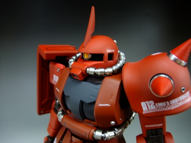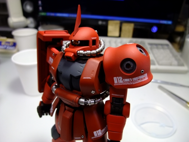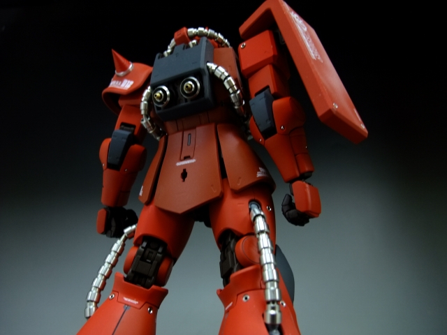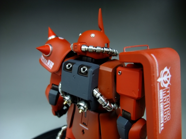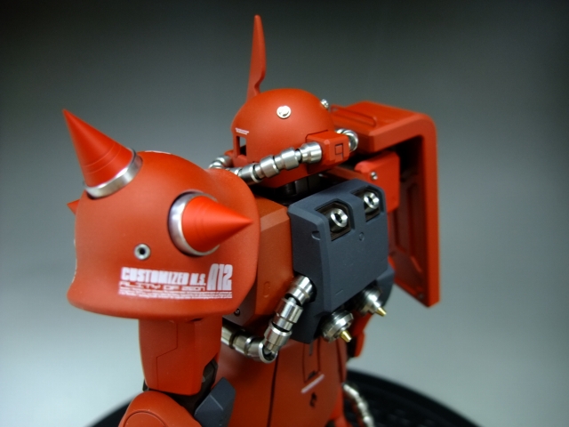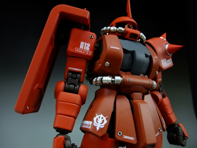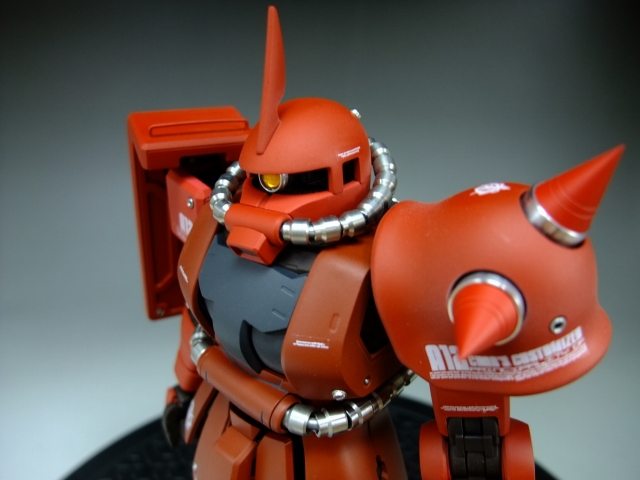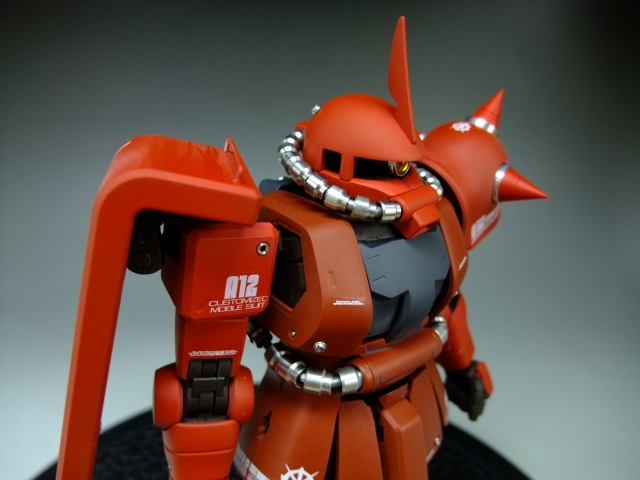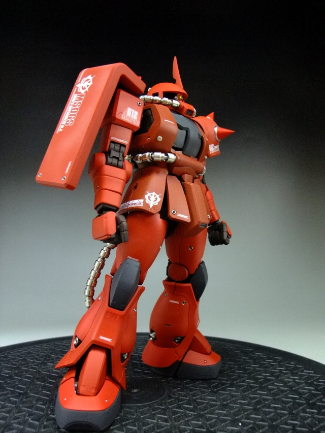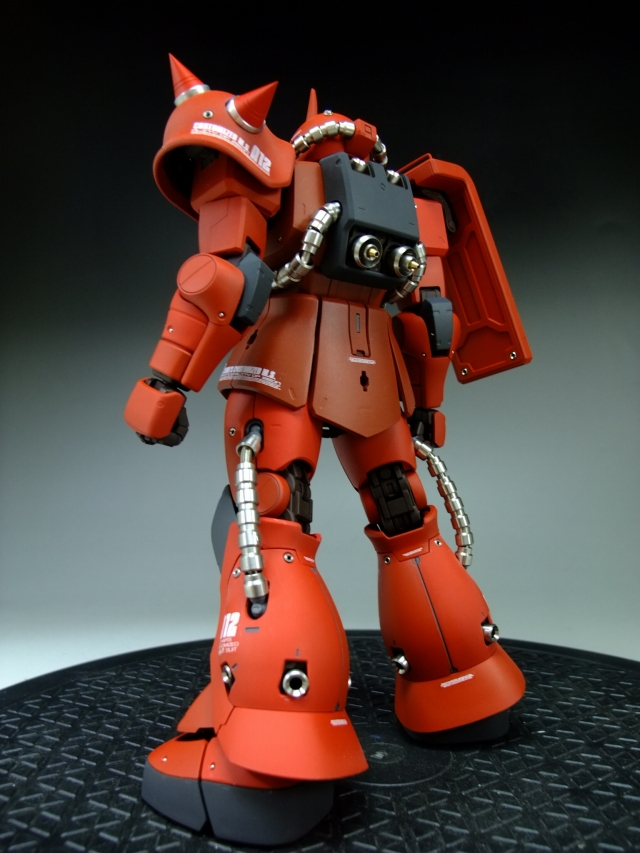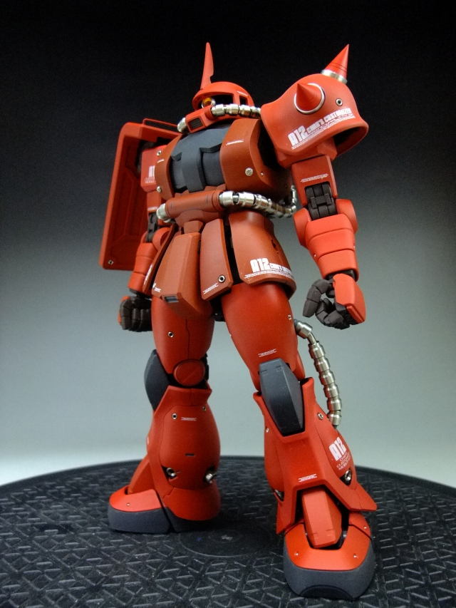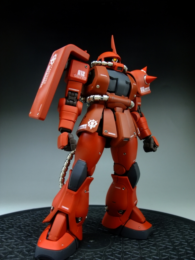 親友ST君へのプレゼントです。元々は「MG 量産ザク MS-06F ザクVer.2.」の完成品でしたが今回リノベーションして、シャア専用ザクにしました。