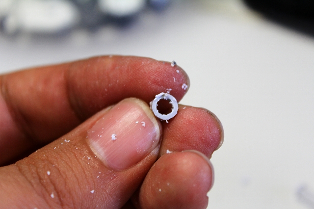 丸ビットや丸凹ビットでバリをキレイに落とす。