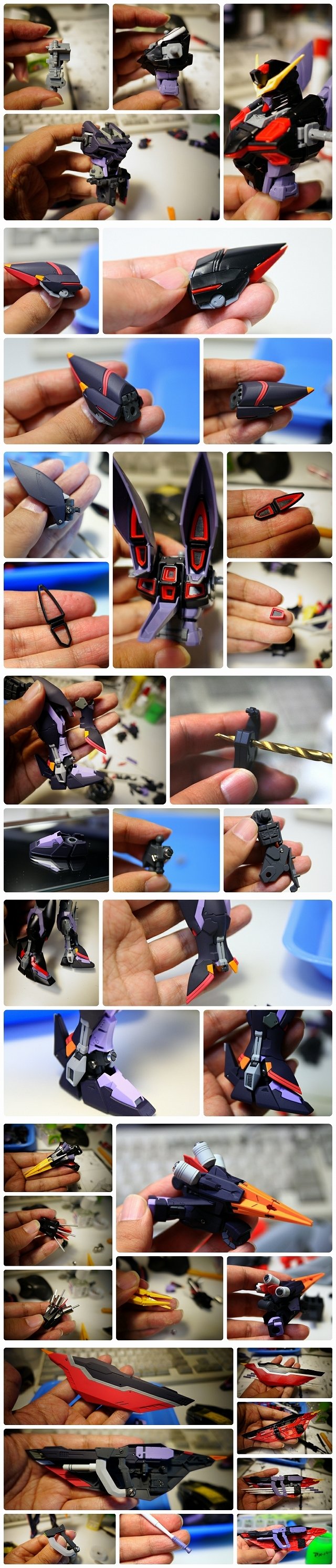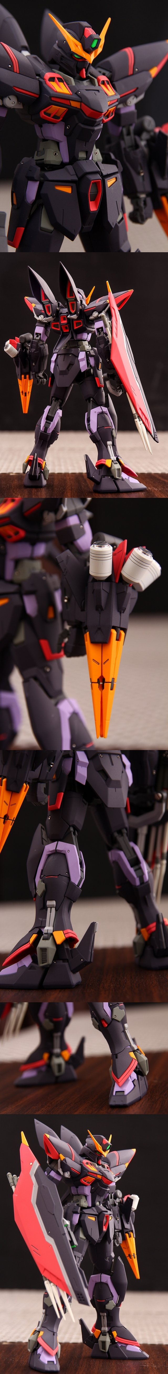 ステルス性という機体だからカラーが足りないのは納得なのですが、同時に制作してるバスターガンダムと並べたときに共通感をもたせたかったので、ところどころカラーアレンジをしました。塗り分けは主にマスキング。一部を筆塗りで行ってます。