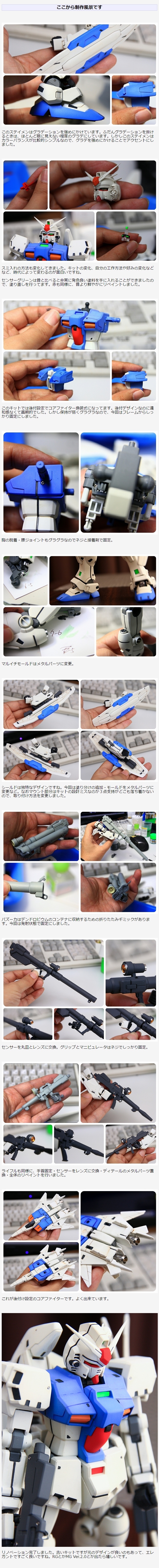 このキットでは後付設定でコアファイター換装式になってます。後付デザインなのに違和感なくて画期的でした。しかし保持が弱くグラグラなので、今回はフレームからしっかり固定にしました。